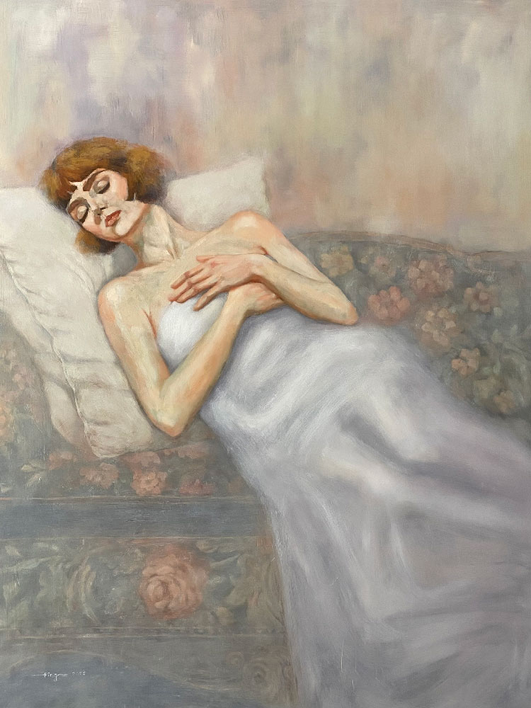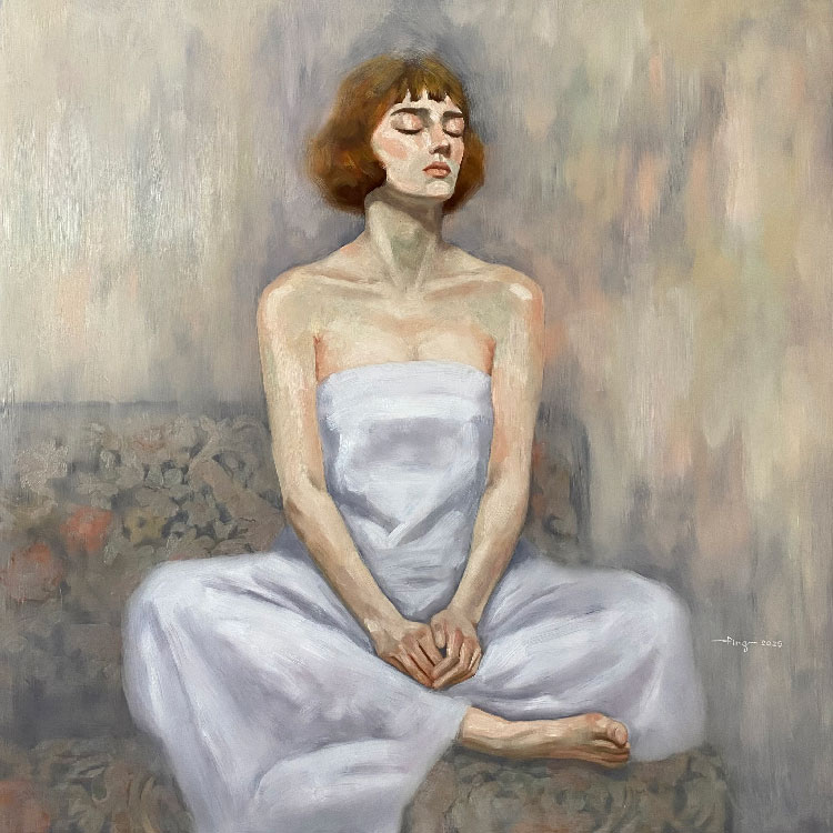 Ping Salvador is a figurative artist whose work offers a profound and intimate meditation on the human experience. Her diverse background as a registered nurse and teacher informs the empathy and honesty that are visible in her paintings. She also instructs drawing, painting, and pottery in her own studio. Ping primarily works in oil, masterfully depicting human figures, tranquil domestic settings, and elements of nature. Her current works are defined by a loose and wispy brushwork, a muted color palette,anchored by subtle echoes of traditional methodology and the introspection of conceptual art. This fusion results in delicate yet powerful contemporary artworks imbued with a distinct feeling of nostalgia and existential reflection.